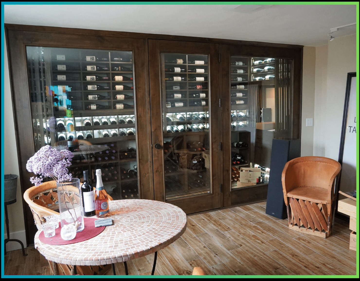 We worked closely with the homeowner to align furniture, art, and décor with his love for wine and visual design. The goal was to create a place where tasting, conversation, and appreciation could happen comfortably—before stepping into the refrigerated environment.