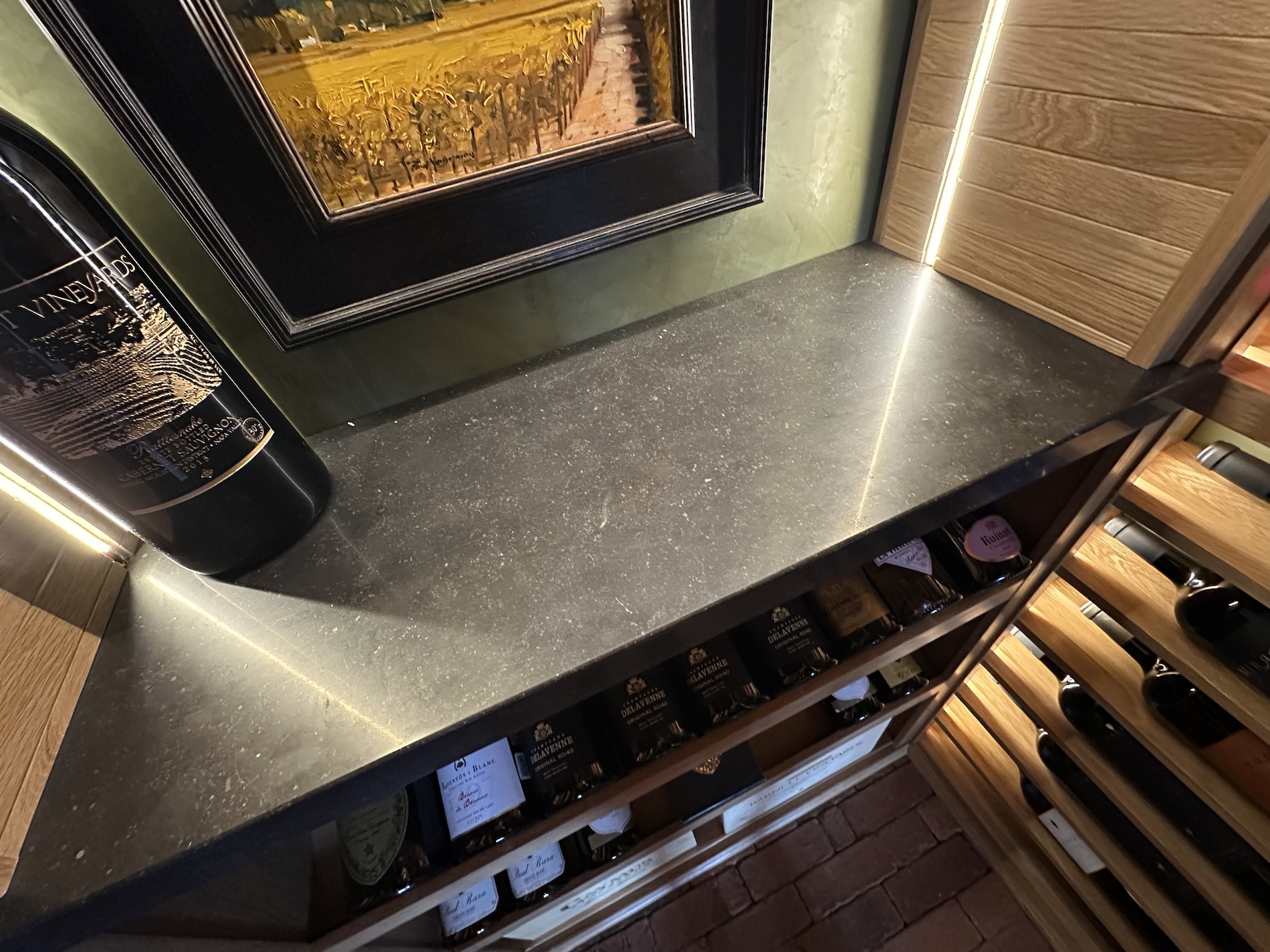 Lighting was approached with restraint to preserve the clean, architectural feel of the space. Concealed LED strips were integrated behind the racking elements, providing gentle illumination without exposing fixtures or introducing excess heat.